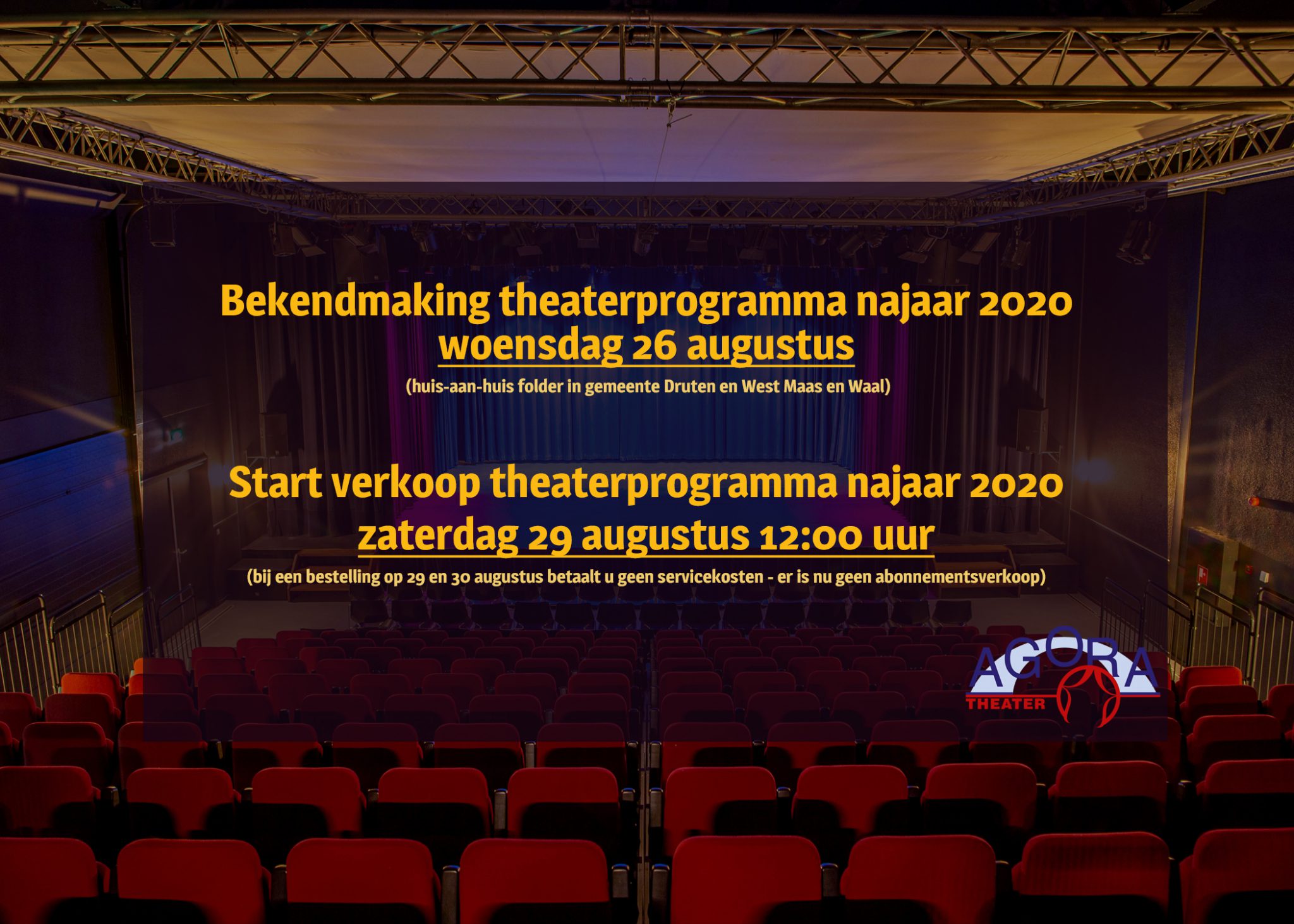 Op 23 maart jl. heeft de Nederlandse overheid de maatregelen om verspreiding van het coronavirus te beperken verlengd. Dat betekent dat alle voorstellingen van Agora Theater zijn afgelast tot 1 juni.